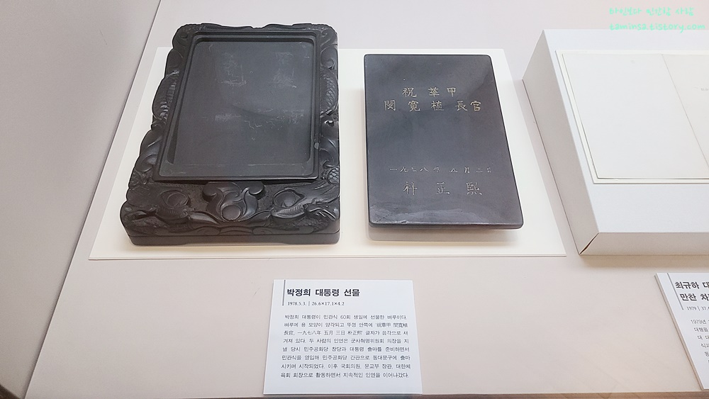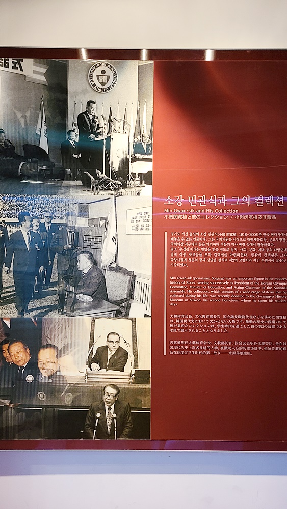 2층으로 올라가면 소강실을 볼 수 있는데 소강 민관식은 경기도 개성 출신의 사람으로 국회의원을 시작으로 대한체육회장, 문교부장관, 국회의장 직무대리 등을 역임한 한국 현대사에 빼놓을 수 없는 인물이라고 한다. 사실 이곳 광교박물관에 오기 전까지는 이름도 들어보지 못한 사람이었지만 그의 기증물들을 천천히 둘러보니 꽤나 대단했던 사람임을 간접적으로나마 느낄 수 있었다.