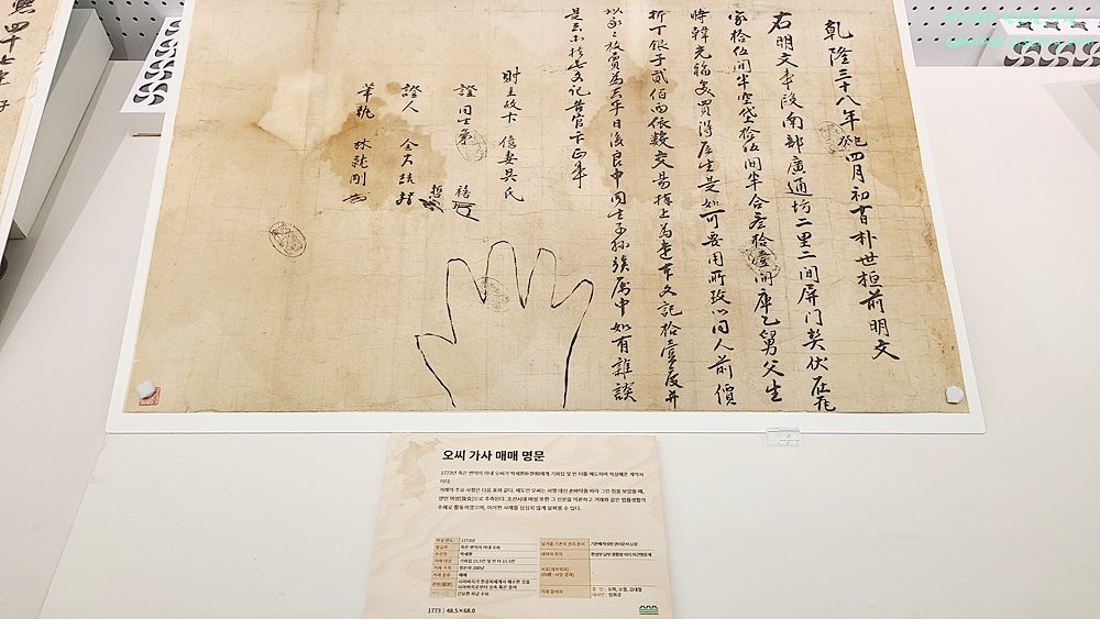 상설전시만으로도 재밌었는데 요즘 부동산 이슈가 뜨거워서인지 조선의 부동산을 테마로 한 전시도 진행 중이었으며, 이곳에서는 조선시대 부동산의 의미, 거래 방식 및 공증 과정 등을 다양한 자료와 이해를 돕기 위한 전시 해설 영상 및 체험존으로 만들어 운영하고 있다.