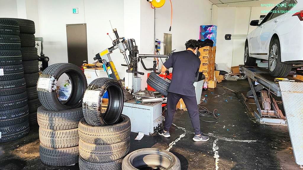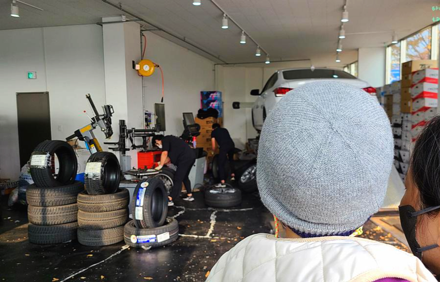 타이어 구매 시 "택배"가 아닌 "방문 수령"으로 선택하면 타이어가 바로 타이어 부착점으로 배송이 되며, 내가 할 일이라곤 그저 사장님과 통화해서 교체 날짜와 시간을 잡는 것뿐이었다. 나는 오늘 오전 9시 30분 장착으로 예약을 하고 조금 일찍 방문을 했는데도 이미 아침 일찍부터 윈터타이어를 교체하는 차들로 가게는 북적거렸다.