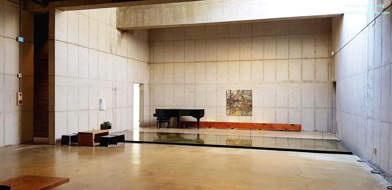 마치 안도 다다오의 건축물처럼 관람객들이