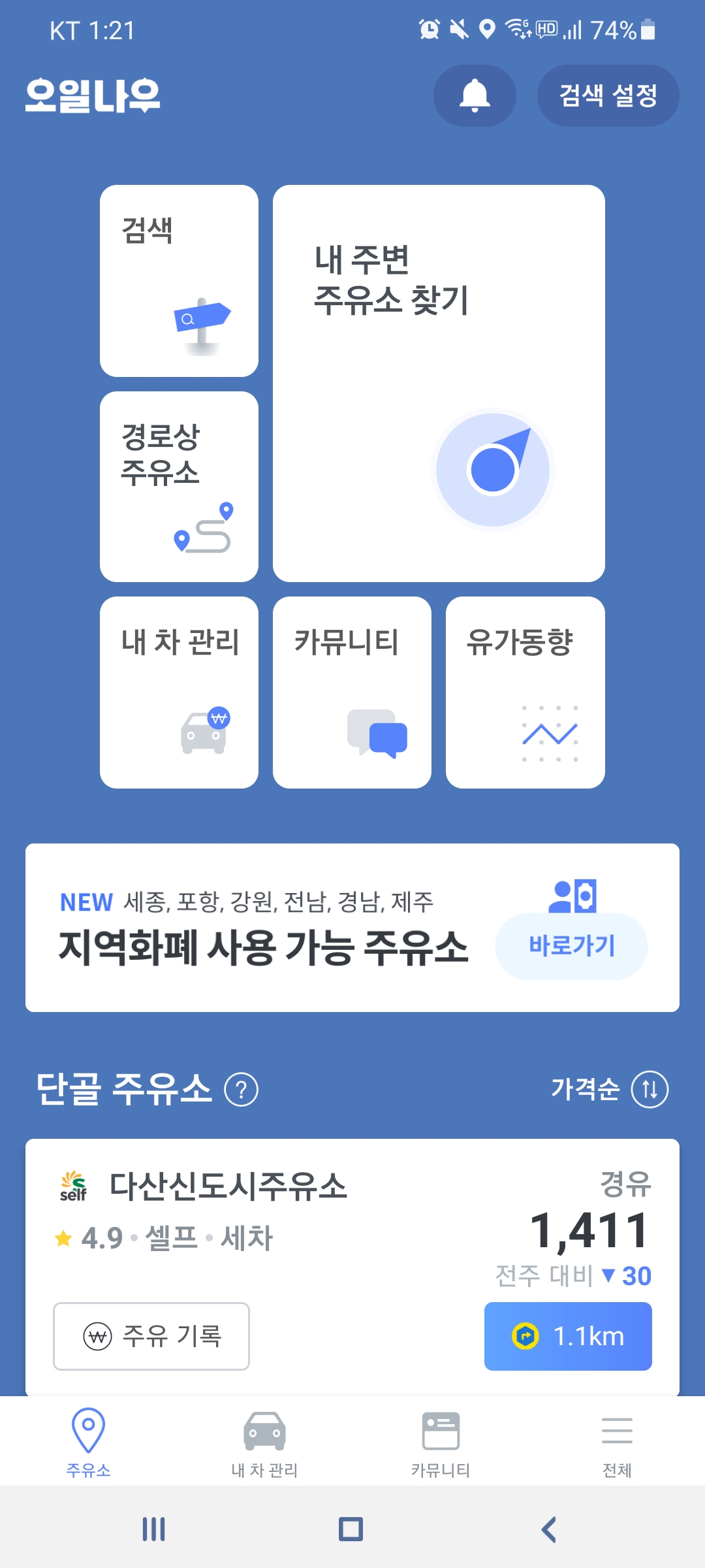 주변에서 가장 가까우면서 저렴한 주유소 외에