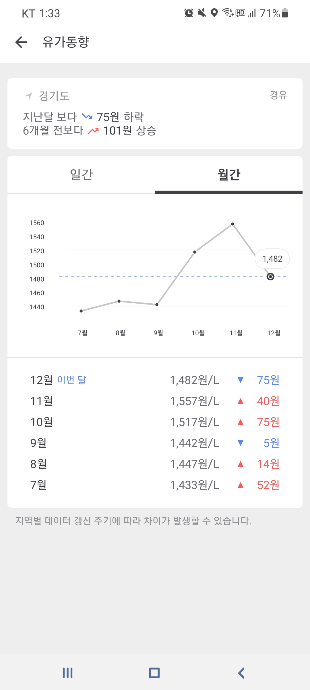 가능하며, 일간/월간 유가 동향을 그래프로