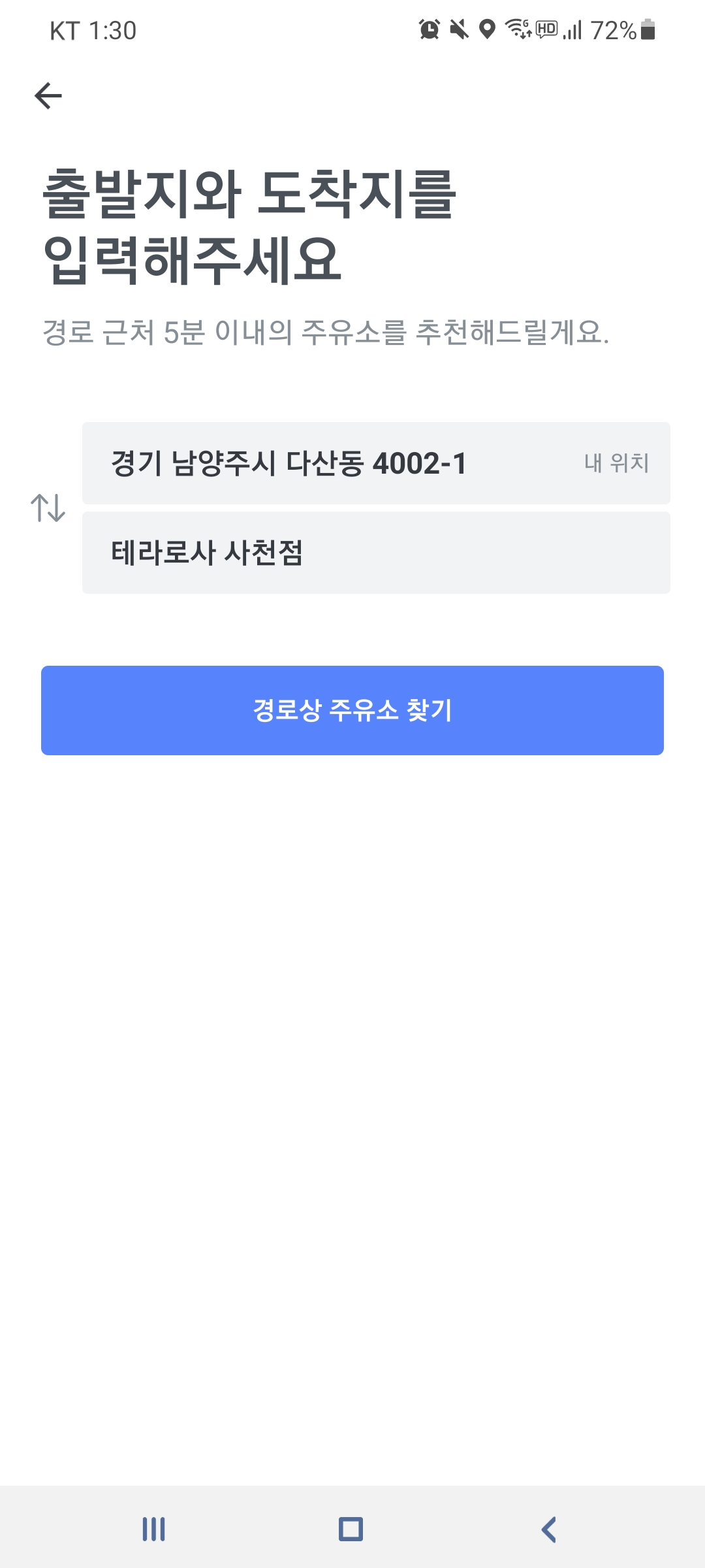 찾을 경우에도 주유소와 목적지를 따로 검색하는