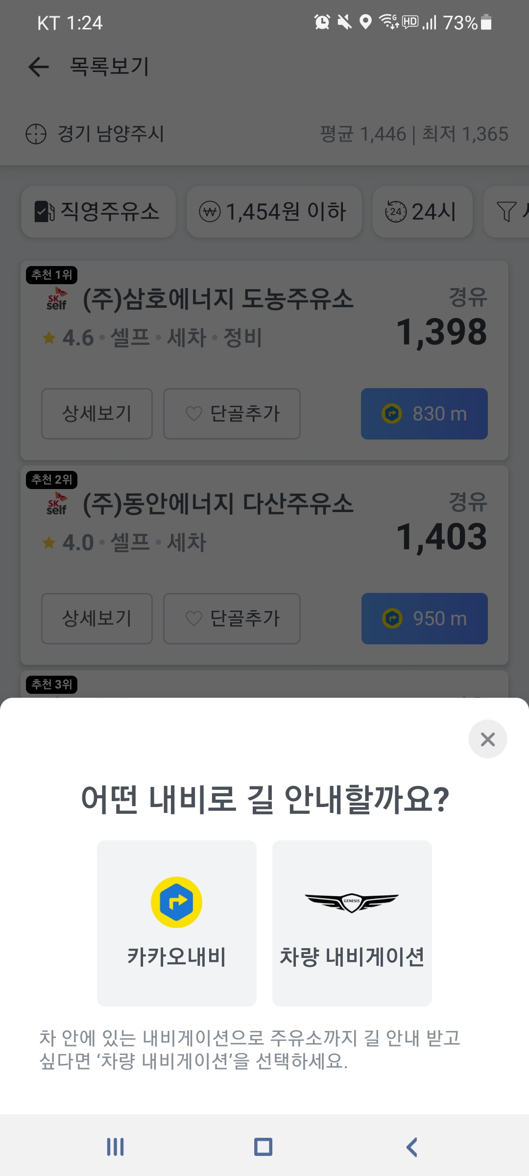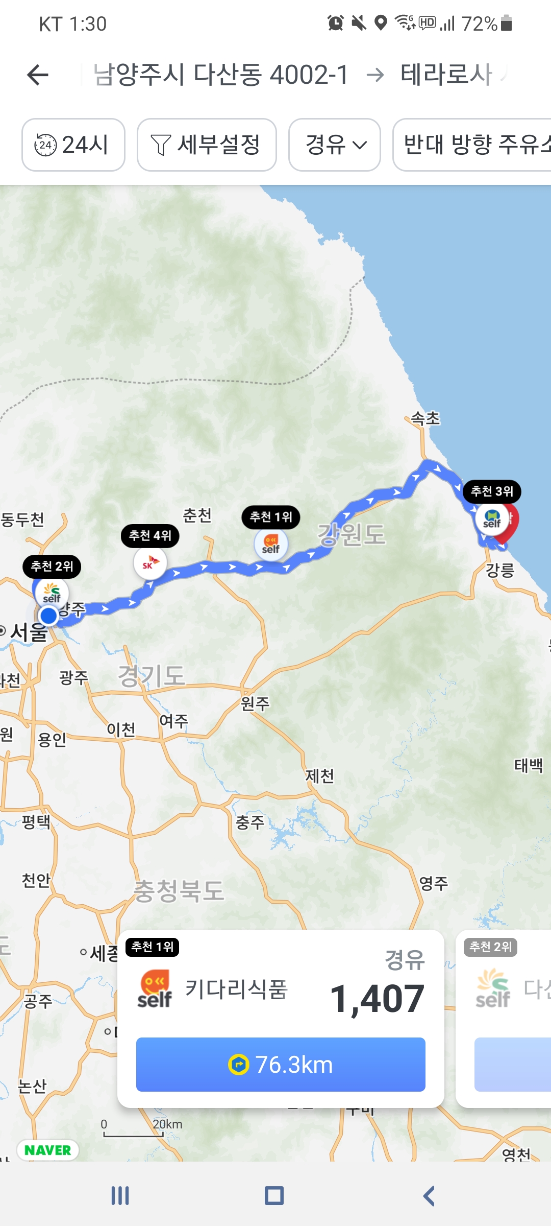 총 4개의 주유소를 추천해주는 것을 볼 수 있다.