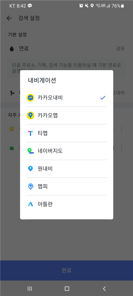 내가 즐겨 사용하는 내비게이션을 등록해두면
