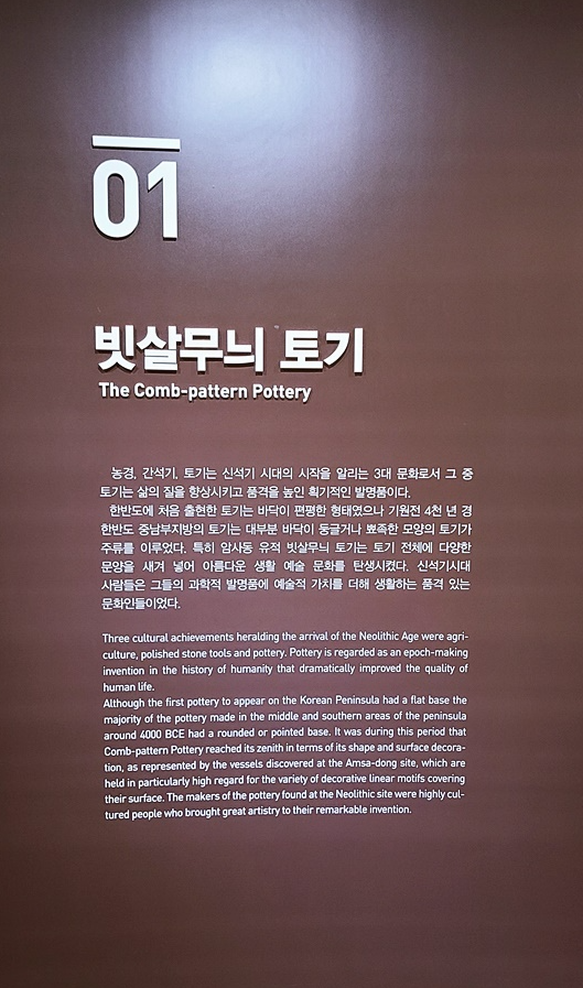 빗살무늬 토기에 대한 전시를 시작으로 현재의