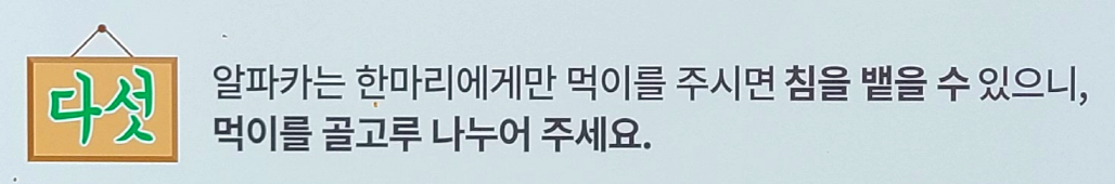 모든 알파카들에게 골고루 먹이를 나눠줬으며