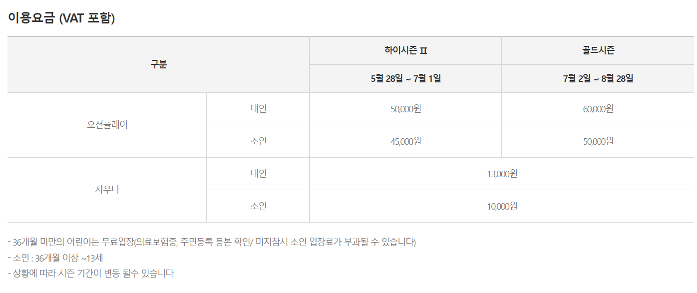 이용대상 : 쏠비치 투숙객 & 오션 플레이 이용객