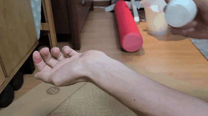 아픈 부위에 볼을 굴릴 때 파스가 발리면서
