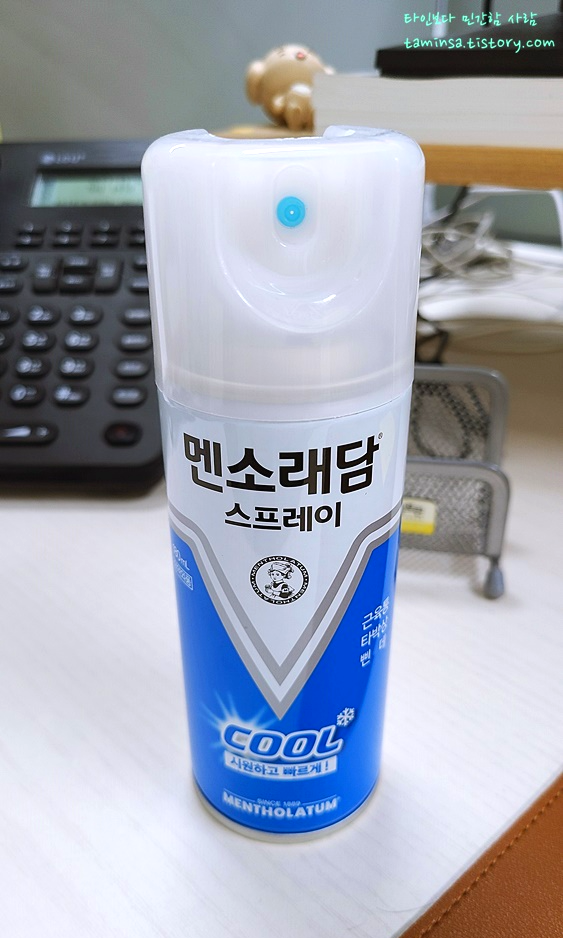 뿌리는 스프레이로는 '근육통 시장의 애플'이라고 할 수 있는 멘소래담의 스프레이 제품을 사용하였으며, 이 제품은 기본적인 진통 효과와 함께 시원한 쿨링감으로 인해 통증이 더 빠르게 감소하는 것 같은 느낌을 주는 것이 장점인 제품이었다. 하지만 아무래도 뿌리는 제품이다 보니 정확한 조준 및 섬세한 양 조절이 어렵고, 다 마르기까지 시간이 조금 오래 걸리는 것이 단점이라 결국 바르는 파스로 다시 또 넘어가게 되었다.