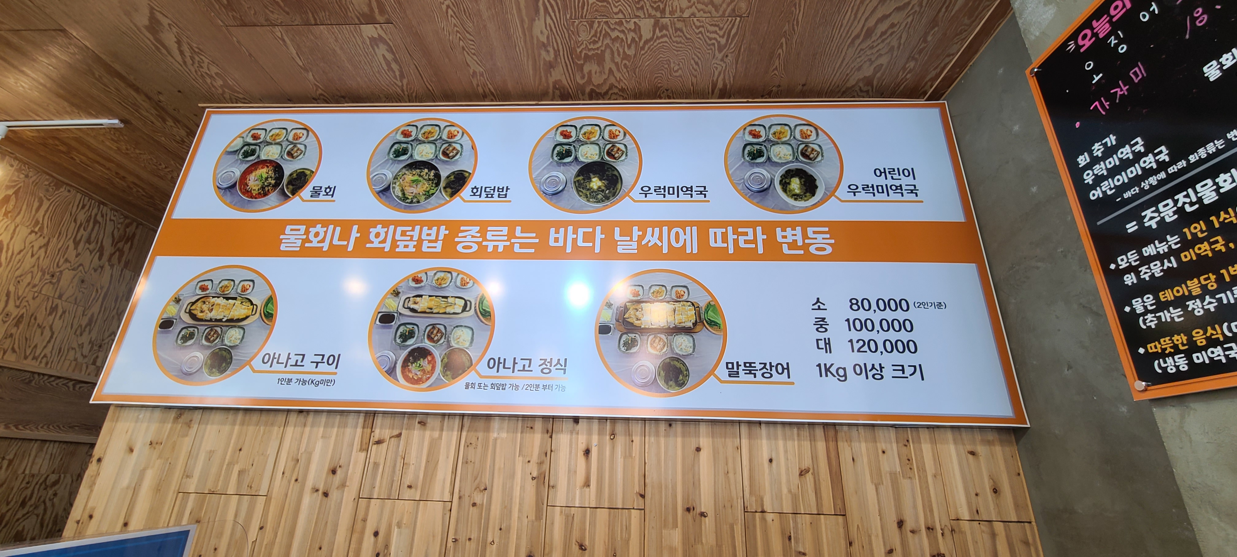 주의사항 : 물회, 회덮밥의 종류/가격 변동