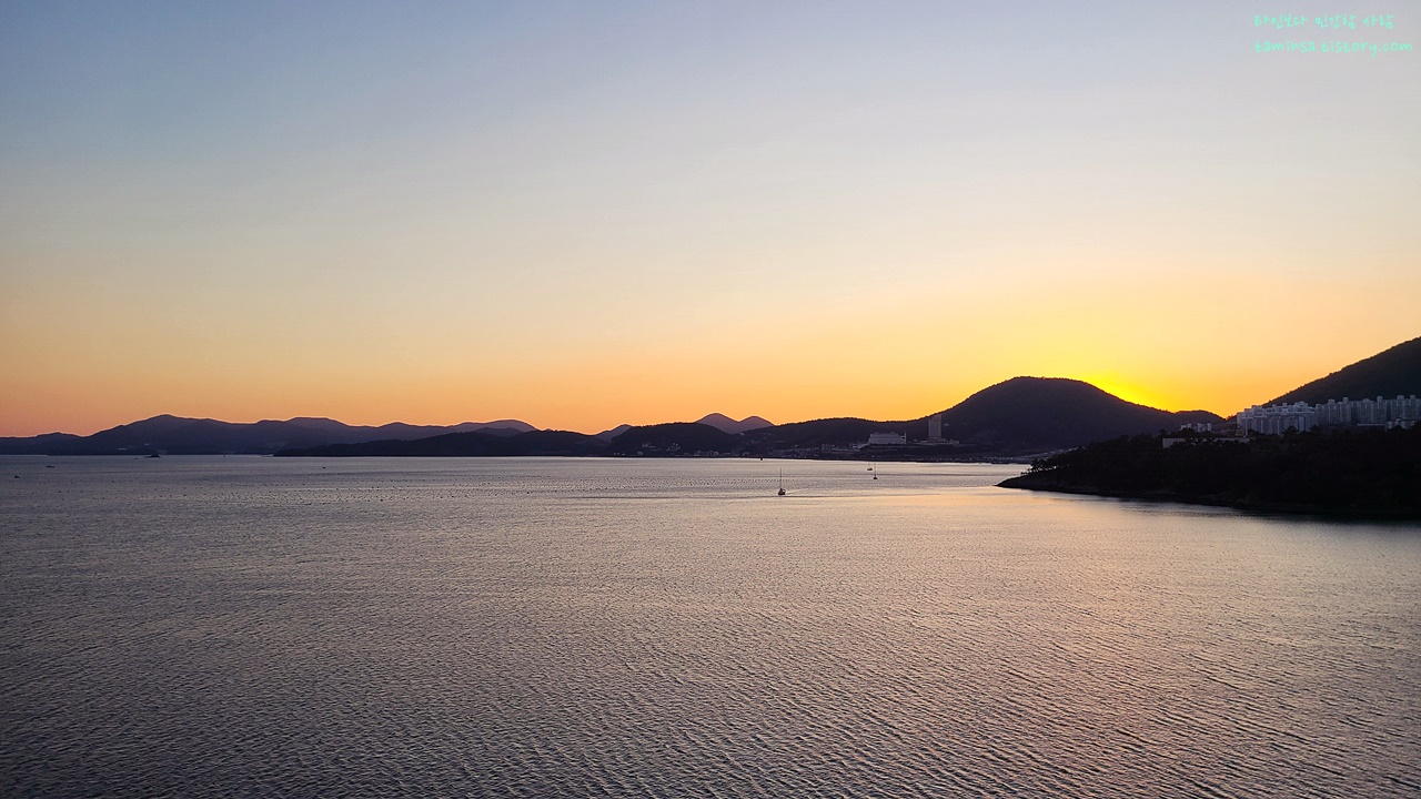 사실 나 같은 경우는 오션뷰를 찾는 목적 자체가 오로지 광활한 바다를 보는 것이기에 방을 옮기고 싶어 카운터에 문의를 해봤으나, 3인 정원의 '주니어 스위트 패밀리 오션뷰'의 경우 모두 이 606호처럼 꺾인 곳에 위치하고 있어서 바다를 정면으로 보는 방은 없다고 하였으니 참고하시기 바라며, 와이프의 의견대로 야경을 보기 위해 방을 바꾸지 않은 덕분에 아래와 같이 선소대교의 멋진 야경도 함께 감상할 수 있었으니 이제 곧 여수 벨메르로 떠나실 분들은 방을 잘 선택하여 예약하시기 바란다.