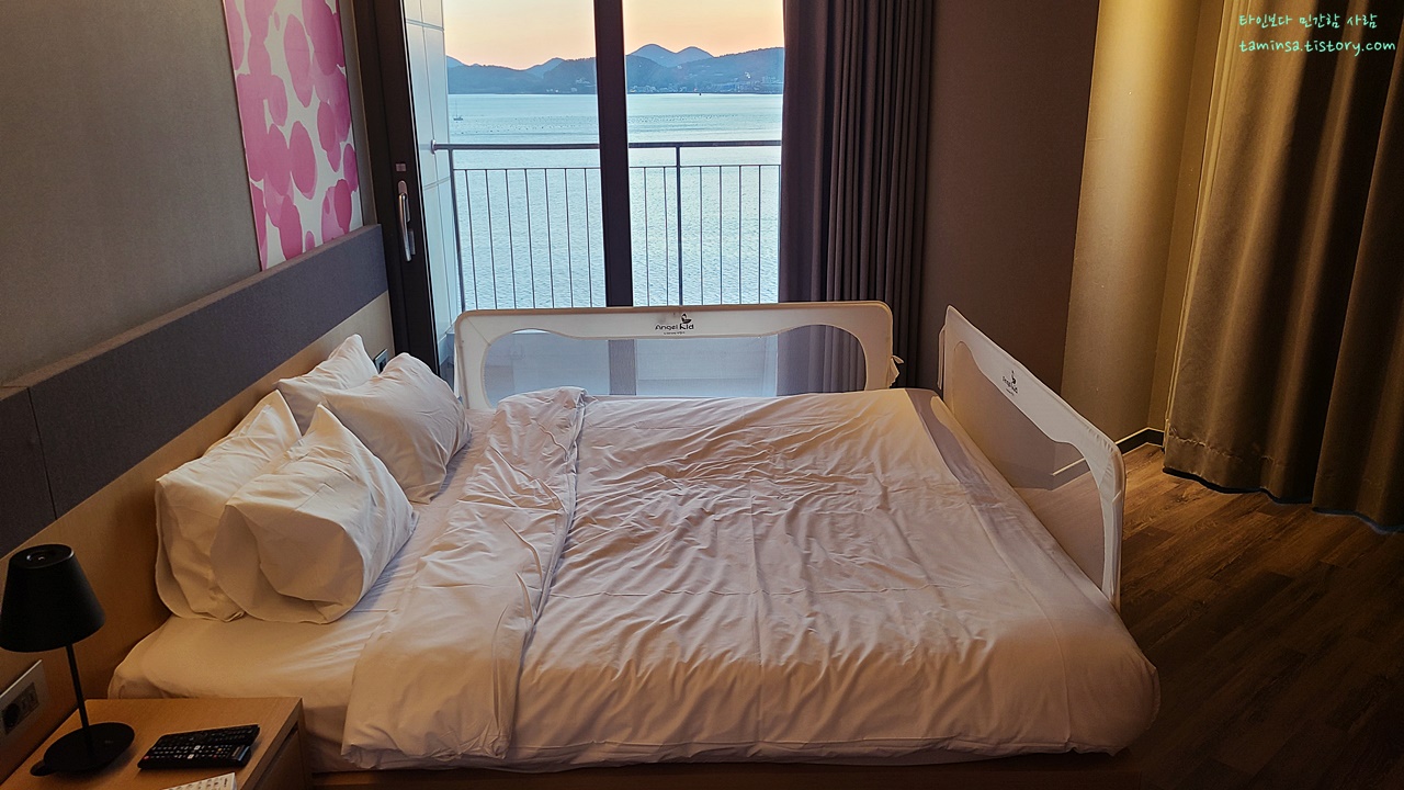 이곳 여수까지 여행을 오신 분들이라면 당연히 오션뷰를 선호할 것이며, 예약 당시 호실이 배정되는 것이 아니기에 그저 설레는 마음으로 체크인 및 방배정을 받으실 것이다. 하지만 이곳 여수 벨메르 호텔의 경우 일부 방의 경우 '바다가 그냥 보이기만 해도 오션뷰지!'라는 마인드로 '오션뷰'라고 해놓은 방들이 있으니 체크인 시에 주의가 필요하다.