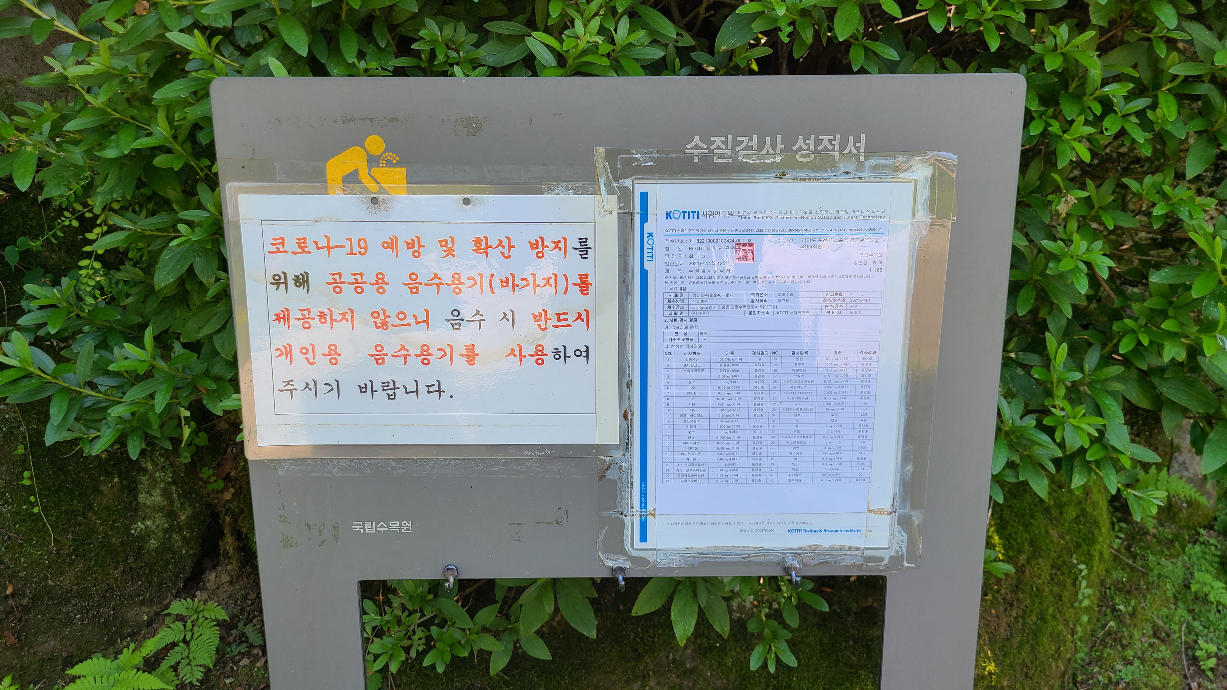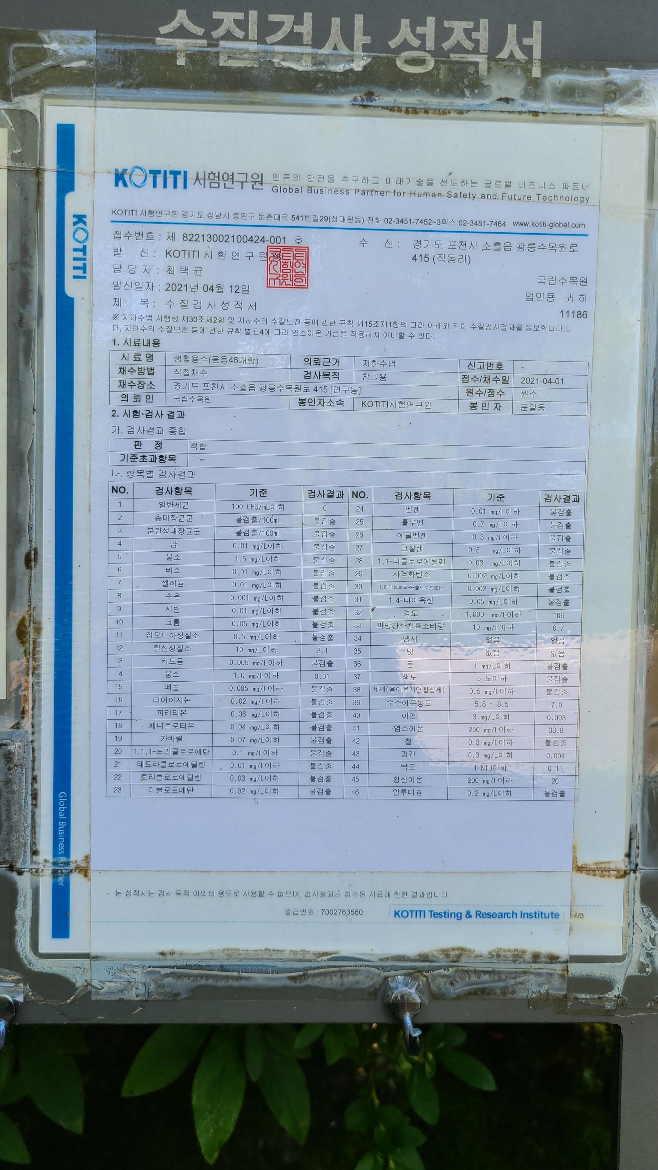 수질검사 성적서를 보니 최근 채수일이 올해