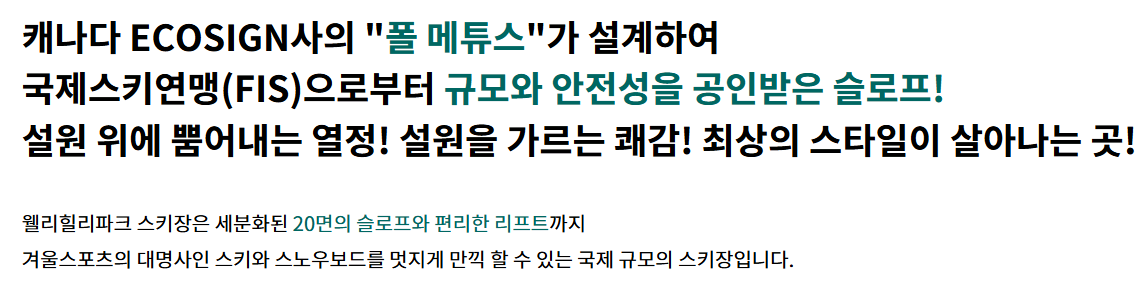 - 워터파크 시설 구비로 스키와 물놀이를 동시에 즐길 수 있음