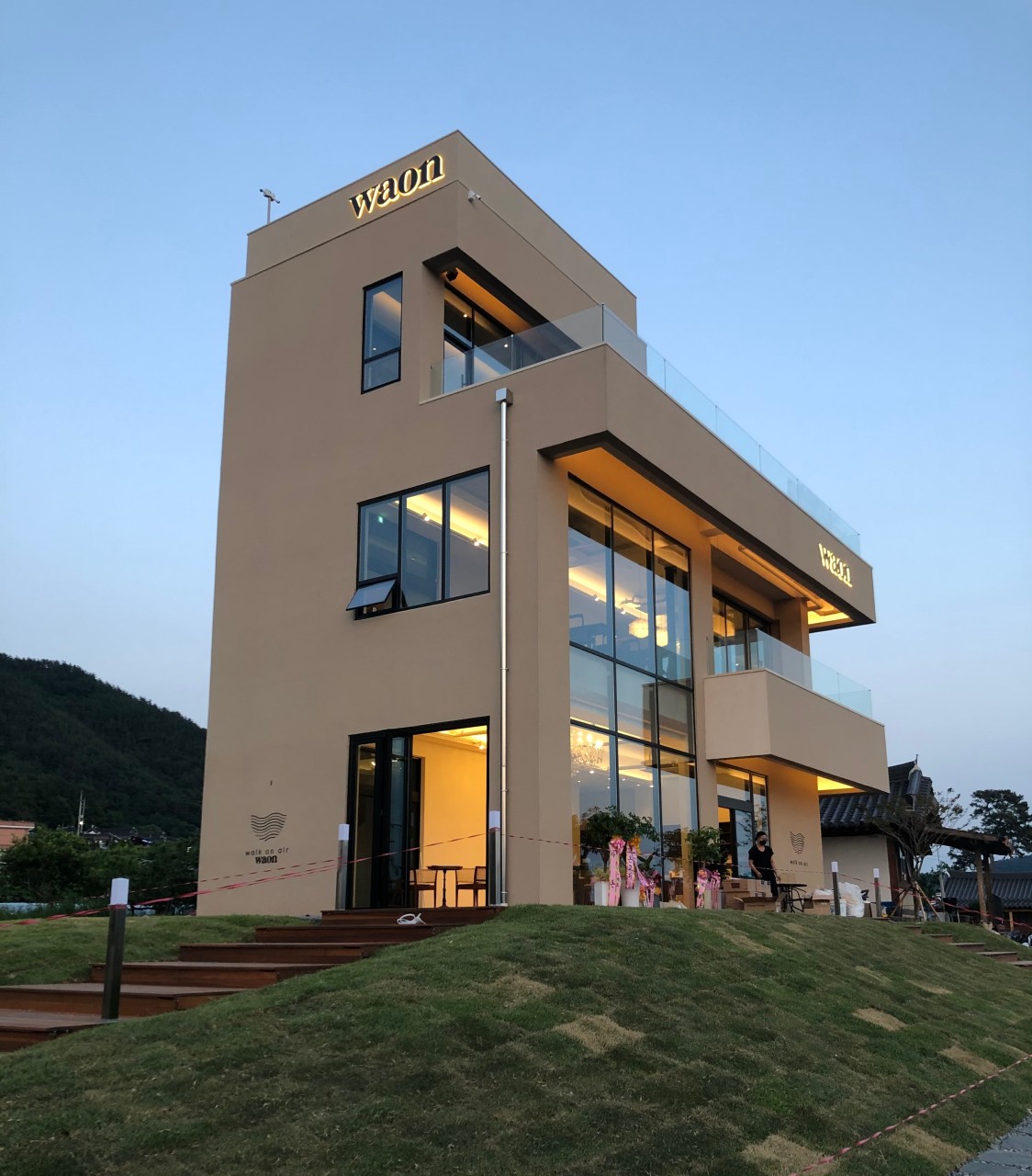 주요 볼거리: 와온해변 일몰 뷰, 3층 전망 테라스, 한옥 풍경