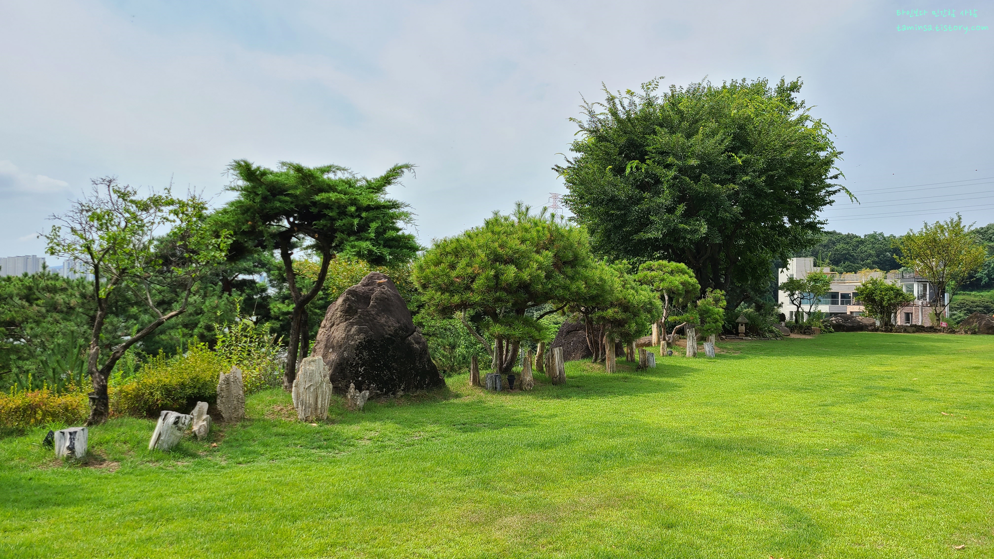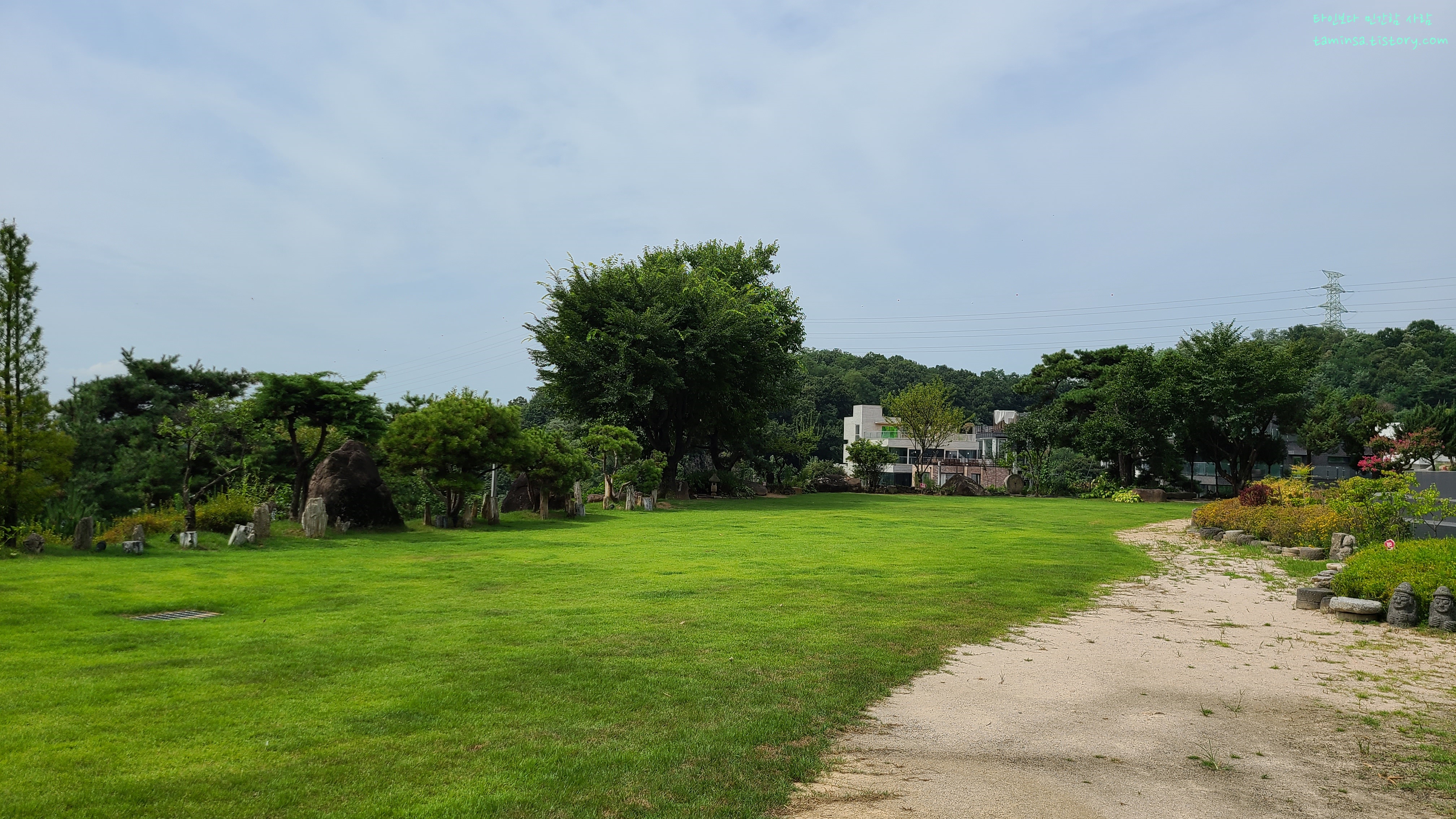 잘 조성된 산책길과 관리된 나무들 사이사이에