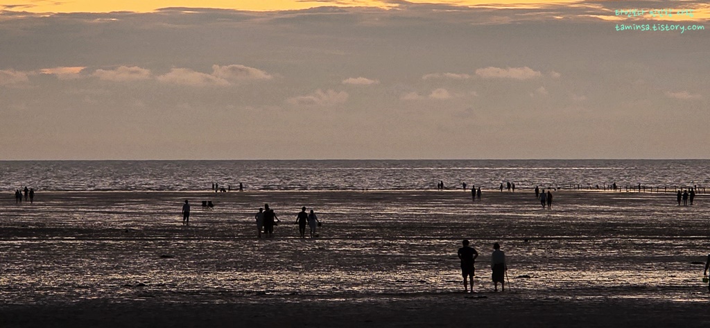 해변가에는 원두막 형태로 지어진 방갈로가 있어 색다른 경험을 제공합니다. 물이 들어오면 이 방갈로들이 마치 수상가옥처럼 보이는 독특한 광경을 연출하며, 바닷가 근처에는 나무로 만들어진 무료 평상도 있어 운이 좋다면 이곳에서 그림 같은 일몰을 편하게 감상할 수 있습니다.