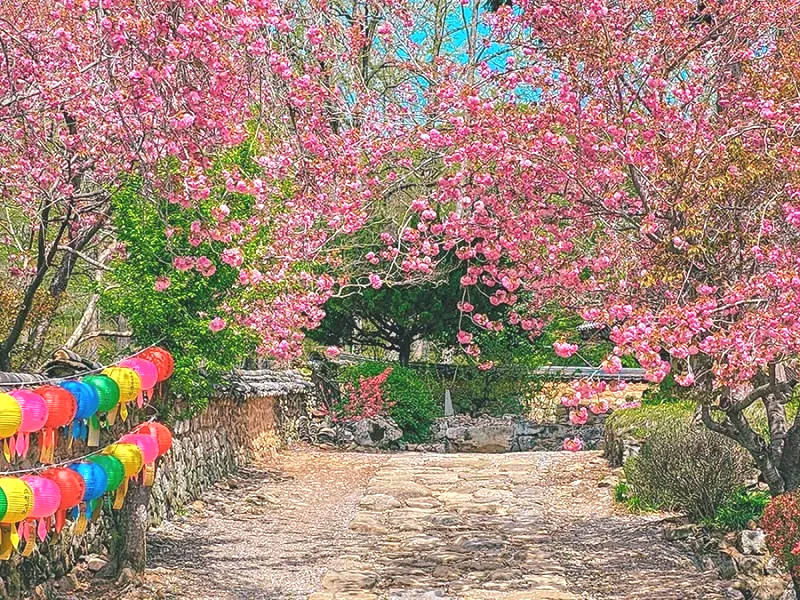 - 특징: 겹벚꽃으로 유명한 사찰로 약 200여 그루가 심어져 있음.