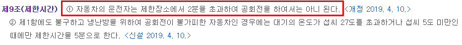 포스팅을 준비하기 전에도 이미 예열의 시간이나 방법 등에 대해서는 알고 있었는데 공회전을 제한하는 법령도 있는 것을 알게 되어 같이 준비해봤다.