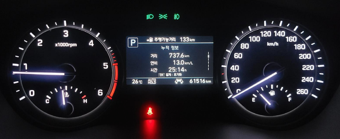 만약 내가 주유를 60L를 했고 현재 남은 주유량이 20L라고 한다면 사용한 연료의 양은 40L이며, 40L의 연료를 사용하는 동안 이동거리가 600Km이다 하면, 위 계산식으로 계산 시 연비는 15Km/L가 된다. 나는 바로 전 차에는 트립컴퓨터가 없어서 매번 주유할 때마다 영수증에 표시되는 L를 기준으로 직접 계산하여 연비를 계산했었는데 확실히 번거롭기는 하지만 나름 다음 주유가 기다려지는 재미도 있었다.