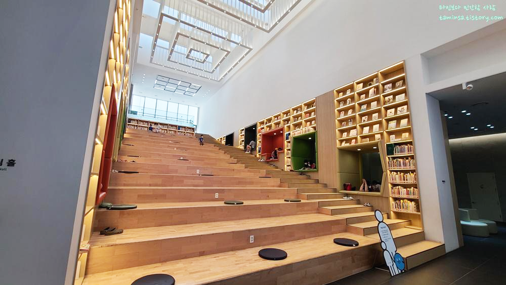 가장 인상 깊었던 공간은 "어울림홀"이었는데 박물관 중앙부에 계단식으로 구성된 독서 공간으로 누구나 편안하게 독서할 수 있는 공간을 만들어 놨다.