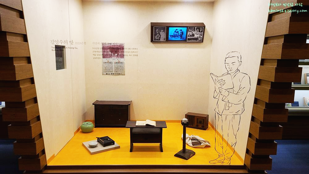 각 세대별 독서 문화에 대한 설명과 베스트 셀러만 있는 것이 아니라 그 시절 평범한 누군가들의 방을 그대로 재현해놓음으로써 그 시절을 살지 않았던 사람들이 간접적으로나마 "그 시절 내 방"을 체험하는 기분을 느낄 수 있는 전시가 매우 좋았다. 특히 3세대 김유진의 방 책상과 책장에 놓여있던 '먼 나라 이웃 나라', '수학의 정석' 등의 책을 보면서 디테일도 잘 챙겼다는 생각이 들었다.