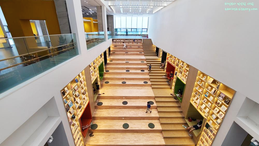 마치 tv프로인 구해줘! 홈즈 같은 곳에서나 볼법한 따뜻하고 포근한 인테리어로 만들어놔서 만약 아이와 함께 오지 않고 혼자 또는 연인과 함께 왔다면 몇 시간이고 머물 수 있을 것 같은 공간이다. 특히 계단의 층마다 쿠션으로 만들어진 네모난 공간에서는 부모와 아이들이 함께 누워서 책을 읽으며 행복한 시간들을 보내고 있었는데, 나중에 우리 아들이 조금 더 자라서 책 읽는 것을 좋아하게 되면 꼭 다시 한 번 와서 누려보고 싶은 자리였다.