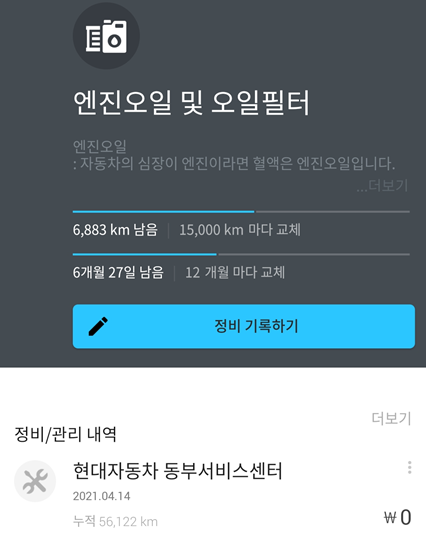 "엔진오일은 7,500 ~ 10,000km 사이에 시간적 여유가 될 때 정비소에 가서 교체"