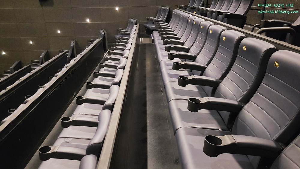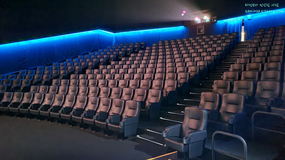 내가 메가박스 스페이스원점을 좋아하는 이유는 거리가 1.5km로 압도적으로 가까운 것도 있지만 사람들이 의외로 없고(이건 코로나 때문인 듯), 시설이 매우 청결하게 관리되고 있기 때문이다. 메가박스 사이트에서도 "경기동부 쇼핑과 문화가 공존하는 DOLBY CINEMA와 상영관 내 자동 살균 청정지역"이라고 소개하고 있는 걸 보면 특별히 청결에 신경을 쓰는 지점인 듯하며, 실제로 방문을 해보면 상영관이나 좌석들이 정말 깨끗하다.